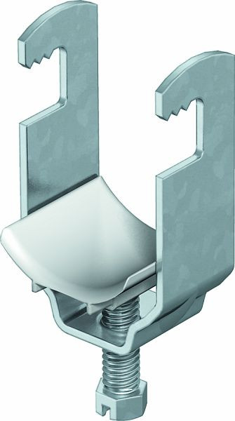 Schelle und Schraube aus tauchfeuerverzinktem Stahl.