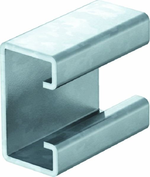 Distanzstück zum Einsatz in US 3-Stielen. Das Distanzstück erhöht die Stabilität des U-Profils und verhindert eine Verformung des Stiels beim Anziehen von durchgängigen Sechskantschrauben.