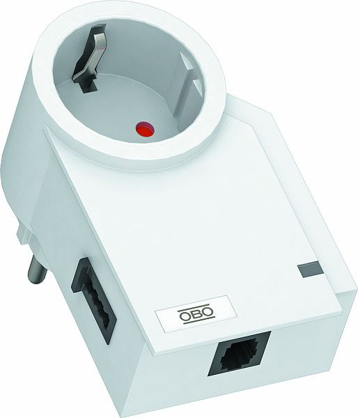 Überspannungsschutz Typ 3 nach EN 61643-11, VDE geprüft, Schukosteckdose inkl. Kindersicherung, mit thermischer und dynamischer Abtrennvorrichtung, zum Schutz von empfindlichen Telefon- Geräten, optische Funktionsanzeige, Schutzpegel < 1,5 kV, Kombinationsschutzgerät zum Schutz der 230V und der Telefon - Eingänge (Analog, ISDN vor dem NTBA, DSL vor dem Splitter), inkl. 0,5 m Anschlussleitung mit TAE/RJ11-Steckern (doppelt geschirmt)