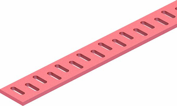 Flacheisensprosse mit doppelter, seitlich versetzter Querlochung zur Erstellung von Abhänge- und Tragkonstruktionen.