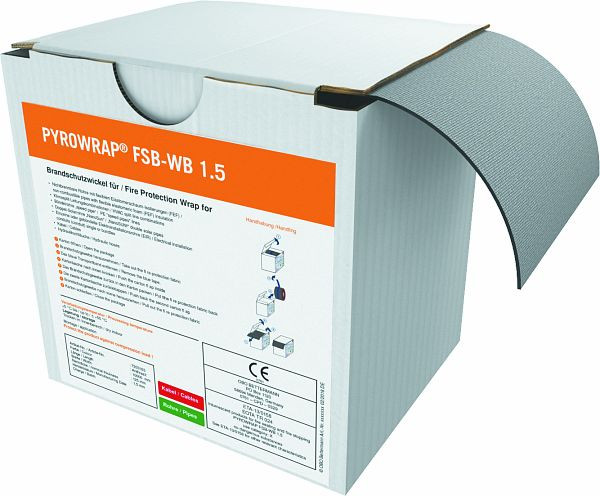 Einseitig beschichteter Brandschutzwickel mit im Brandfall aufschäumendem Material zum Umwickeln von Installationen in den Abschottungen PYROMIX® Mörtelschott und PYROPLATE® Fibre Plattenschott. Das Trägergewebe ist einseitig mit dem Dämmschichtbildner versehen. Die Nennstärke beträgt 1,5 mm.