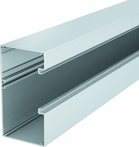 Geräteeinbaukanal ohne Bodenlochung zur direkten Wandmontage oder an Konsolen geeignet. Überlängen bis 6000 mm von Kanalunterteilen und -oberteilen sowie andere RAL-Farben können auf Anfrage realisiert werden. Die Sichtflächen der Geräteeinbaukanäle sind foliert.