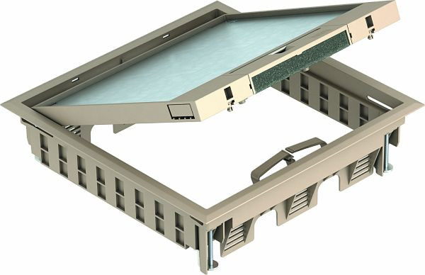 Bodenbelagaussparung im Klappdeckel voreingestellt auf 5 mm, bei Bedarf auch einstellbar auf 10 mm.