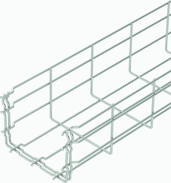 Gitterrinne mit angeformtem Verbinder in der Seitenhöhe 105 mm.