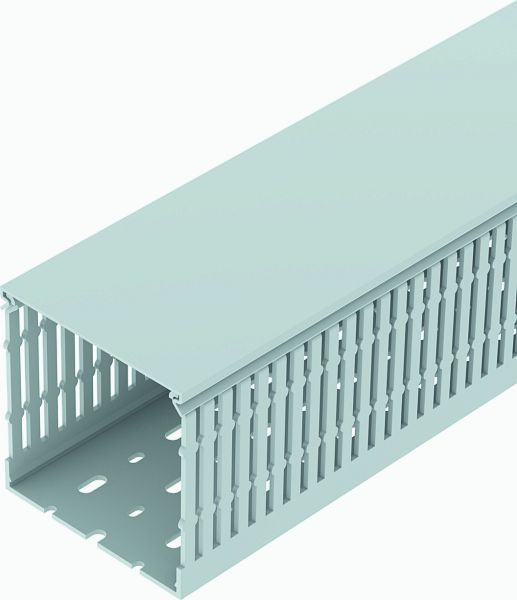 Halogenfreier Verdrahtungskanal inkl. Oberteil und Bodenlochung zur waagerechten und senkrechten Verlegung elektrischer Kabel und Leitungen im Schaltschrank. Mit doppelseitigen Klebeband am Kanalboden als Montagehilfe. Ausführung als metrischer Kanal. Das Ausbrechen der Stege erfolgt werkzeuglos. Sonderlängen auf Anfrage.