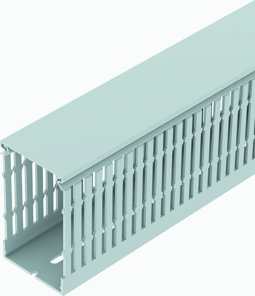 Halogenfreier Verdrahtungskanal inkl. Oberteil und Bodenlochung zur waagerechten und senkrechten Verlegung elektrischer Kabel und Leitungen im Schaltschrank. Mit doppelseitigen Klebeband am Kanalboden als Montagehilfe. Ausführung als metrischer Kanal. Das Ausbrechen der Stege erfolgt werkzeuglos. Sonderlängen auf Anfrage.