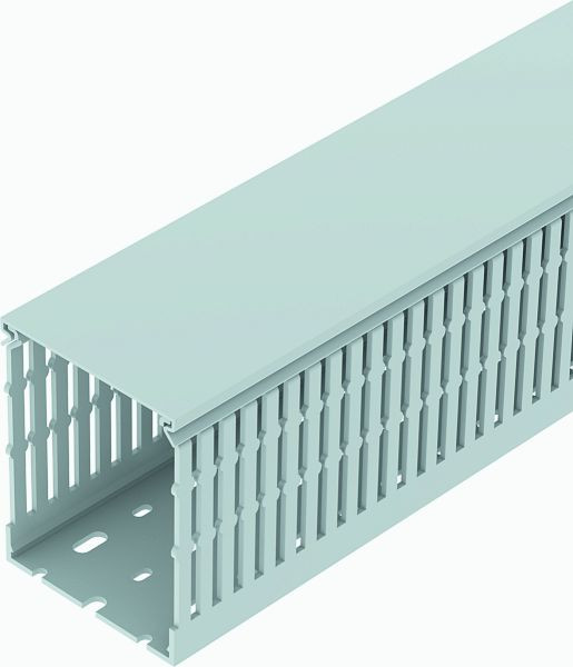 Halogenfreier Verdrahtungskanal inkl. Oberteil und Bodenlochung zur waagerechten und senkrechten Verlegung elektrischer Kabel und Leitungen im Schaltschrank. Mit doppelseitigen Klebeband am Kanalboden als Montagehilfe. Ausführung als metrischer Kanal. Das Ausbrechen der Stege erfolgt werkzeuglos. Sonderlängen auf Anfrage.