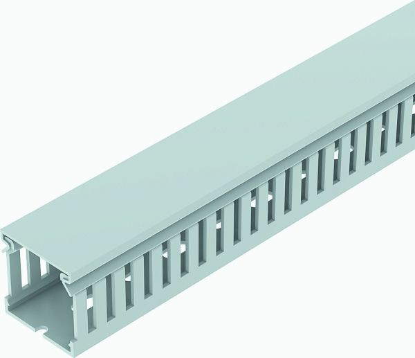 Halogenfreier Verdrahtungskanal inkl. Oberteil und Bodenlochung zur waagerechten und senkrechten Verlegung elektrischer Kabel und Leitungen im Schaltschrank. Mit doppelseitigen Klebeband am Kanalboden als Montagehilfe. Ausführung als metrischer Kanal. Das Ausbrechen der Stege erfolgt werkzeuglos. Sonderlängen auf Anfrage.