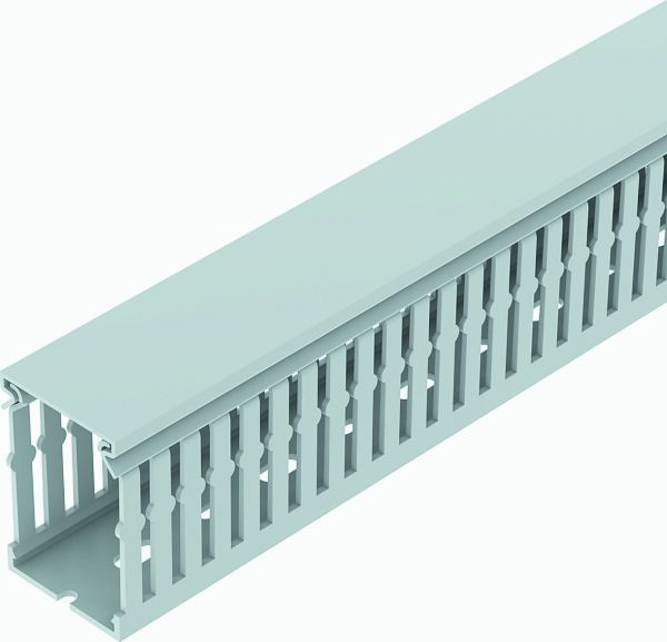 Halogenfreier Verdrahtungskanal inkl. Oberteil und Bodenlochung zur waagerechten und senkrechten Verlegung elektrischer Kabel und Leitungen im Schaltschrank. Mit doppelseitigen Klebeband am Kanalboden als Montagehilfe. Ausführung als metrischer Kanal. Das Ausbrechen der Stege erfolgt werkzeuglos. Sonderlängen auf Anfrage.