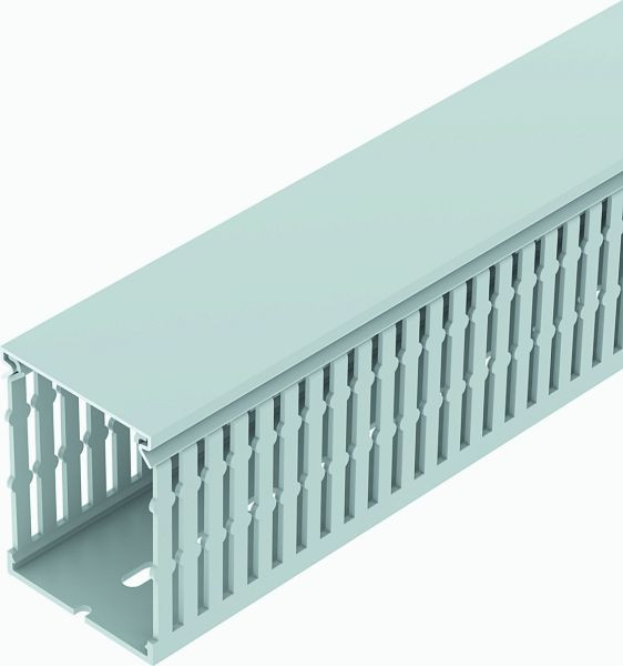 Halogenfreier Verdrahtungskanal inkl. Oberteil und Bodenlochung zur waagerechten und senkrechten Verlegung elektrischer Kabel und Leitungen im Schaltschrank. Mit doppelseitigen Klebeband am Kanalboden als Montagehilfe. Ausführung als metrischer Kanal. Das Ausbrechen der Stege erfolgt werkzeuglos. Sonderlängen auf Anfrage.