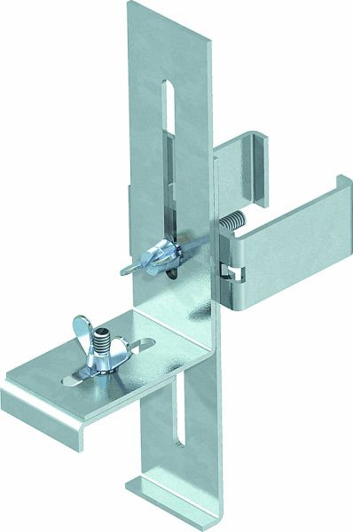 Klemmbefestigung zum Befestigen des Teleskop-Profils der Installationssäule ISS70110ST an den Tragschienen von Zwischen- oder abgehängten Decken.