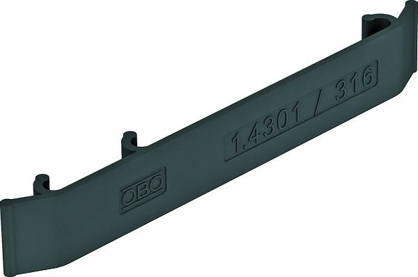 Kennzeichnungsschild für Gitterrinnen zur schraubenlosen Befestigung.
