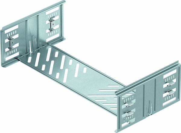 Kabelrinnenverbinder mit Schnellbefestigung für die schraubenlose Verbindung von gelochten Kabelrinnen mit der Seitenhöhe 110 mm.