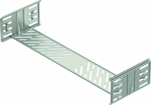 Kabelrinnenverbinder mit Schnellbefestigung für die schraubenlose Verbindung von gelochten Kabelrinnen mit der Seitenhöhe 110 mm.