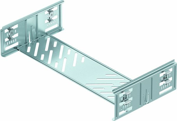 Kabelrinnenverbinder mit Schnellbefestigung für die schraubenlose Verbindung von gelochten Kabelrinnen mit der Seitenhöhe 85 mm.