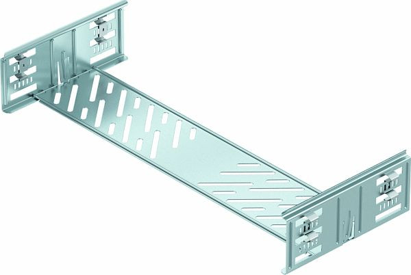 Kabelrinnenverbinder mit Schnellbefestigung für die schraubenlose Verbindung von gelochten Kabelrinnen mit der Seitenhöhe 85 mm.