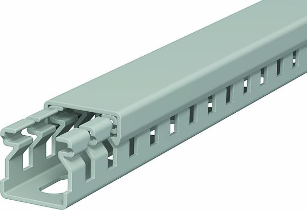 Verdrahtungskanal inkl. Oberteil und Bodenlochung zur waagerechten und senkrechten Verlegung elektrischer Kabel und Leitungen im Schaltschrank. Ausführung als metrischer Kanal. Das Nennmaß der Systemgröße entspricht dem Innenmaß der Kanäle. Das Ausbrechen der Stege erfolgt werkzeuglos. Bodenbündiges Ausführen ist durch Sollbruchstellen möglich. Geprüft nach DIN EN 50085-2-3. Sonderlängen auf Anfrage.
