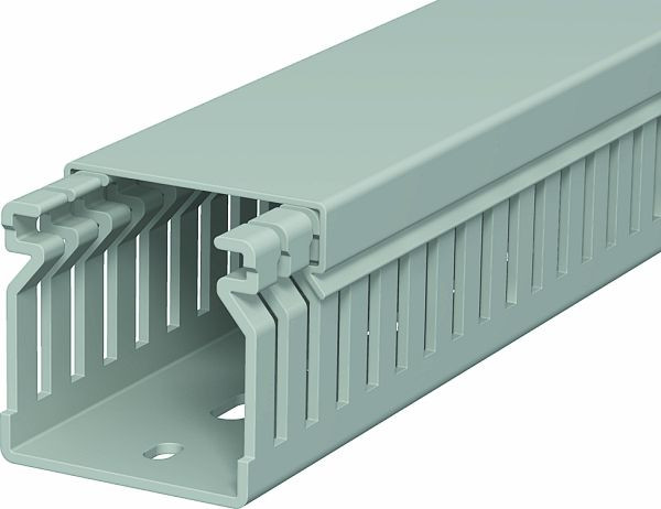 Verdrahtungskanal inkl. Oberteil und Bodenlochung zur waagerechten und senkrechten Verlegung elektrischer Kabel und Leitungen im Schaltschrank. Ausführung als metrischer Kanal. Das Nennmaß der Systemgröße entspricht dem Innenmaß der Kanäle. Das Ausbrechen der Stege erfolgt werkzeuglos. Bodenbündiges Ausführen ist durch Sollbruchstellen möglich. Geprüft nach DIN EN 50085-2-3. Sonderlängen auf Anfrage.