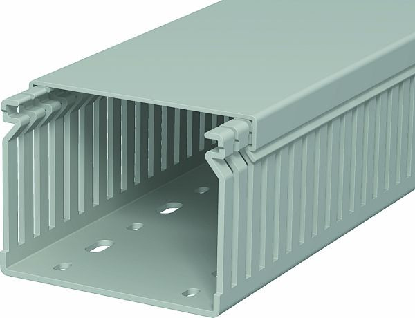 Verdrahtungskanal inkl. Oberteil und Bodenlochung zur waagerechten und senkrechten Verlegung elektrischer Kabel und Leitungen im Schaltschrank. Ausführung als metrischer Kanal. Das Nennmaß der Systemgröße entspricht dem Innenmaß der Kanäle. Das Ausbrechen der Stege erfolgt werkzeuglos. Bodenbündiges Ausführen ist durch Sollbruchstellen möglich. Geprüft nach DIN EN 50085-2-3. Sonderlängen auf Anfrage.