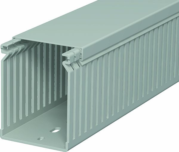 Verdrahtungskanal inkl. Oberteil und Bodenlochung zur waagerechten und senkrechten Verlegung elektrischer Kabel und Leitungen im Schaltschrank. Ausführung als metrischer Kanal. Das Nennmaß der Systemgröße entspricht dem Innenmaß der Kanäle. Das Ausbrechen der Stege erfolgt werkzeuglos. Bodenbündiges Ausführen ist durch Sollbruchstellen möglich. Geprüft nach DIN EN 50085-2-3. Sonderlängen auf Anfrage.