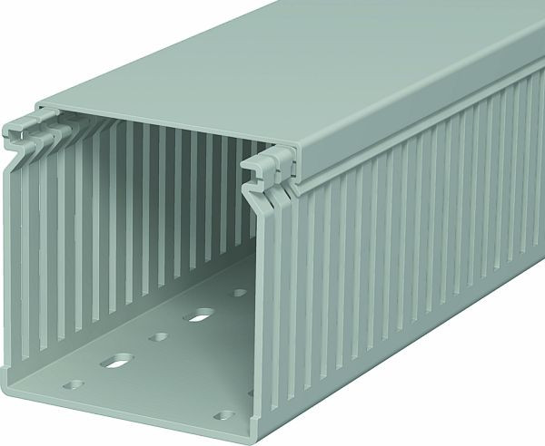Verdrahtungskanal inkl. Oberteil und Bodenlochung zur waagerechten und senkrechten Verlegung elektrischer Kabel und Leitungen im Schaltschrank. Ausführung als metrischer Kanal. Das Nennmaß der Systemgröße entspricht dem Innenmaß der Kanäle. Das Ausbrechen der Stege erfolgt werkzeuglos. Bodenbündiges Ausführen ist durch Sollbruchstellen möglich. Geprüft nach DIN EN 50085-2-3. Sonderlängen auf Anfrage.
