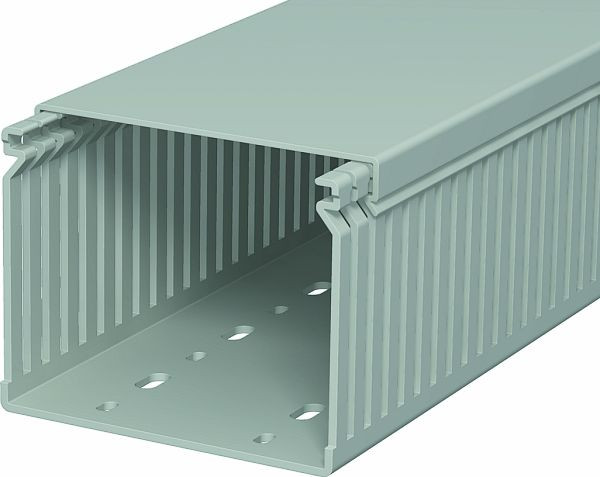 Verdrahtungskanal inkl. Oberteil und Bodenlochung zur waagerechten und senkrechten Verlegung elektrischer Kabel und Leitungen im Schaltschrank. Ausführung als metrischer Kanal. Das Nennmaß der Systemgröße entspricht dem Innenmaß der Kanäle. Das Ausbrechen der Stege erfolgt werkzeuglos. Bodenbündiges Ausführen ist durch Sollbruchstellen möglich. Geprüft nach DIN EN 50085-2-3. Sonderlängen auf Anfrage.