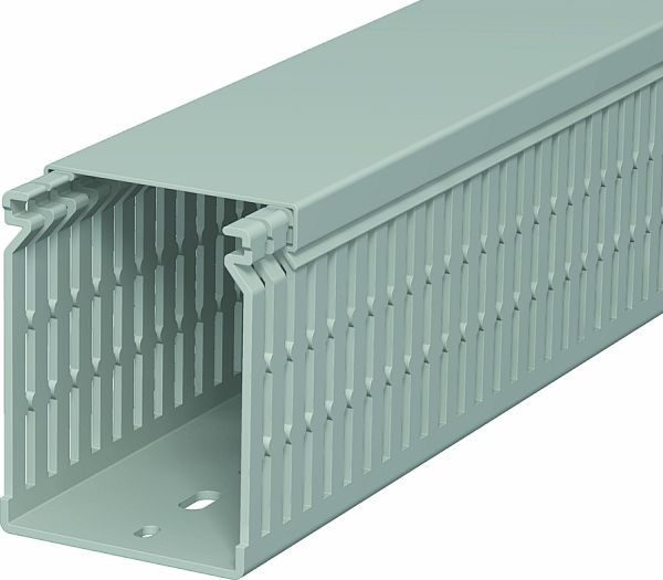 Verdrahtungskanal inkl. Oberteil und Bodenlochung zur waagerechten und senkrechten Verlegung elektrischer Kabel und Leitungen im Schaltschrank. Ausführung als metrischer Kanal. Das Nennmaß der Systemgröße entspricht dem Innenmaß der Kanäle. Das Ausbrechen der Stege erfolgt werkzeuglos. Bodenbündiges Ausführen ist durch Sollbruchstellen möglich. Verjüngungen in den Seitenschlitzen verhindern das Herausfallen der Leitungen. Geprüft nach DIN EN 50085-2-3. Sonderlängen auf Anfrage.
