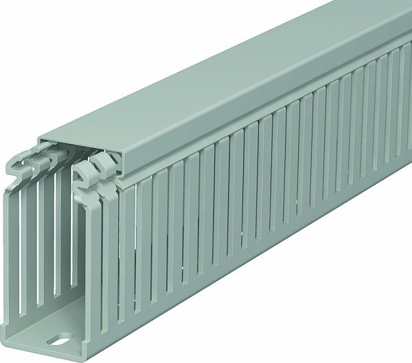 Verdrahtungskanal nach DIN EN 50085-2-3 inkl. Oberteil und Bodenlochung zur waagerechten und senkrechten Verlegung elektrischer Kabel und Leitungen im Schaltschrank. Ausführung als DIN-Kanal. Das Ausbrechen der Stege erfolgt werkzeuglos. Bodenbündiges Ausführen ist durch Sollbruchstellen möglich. Geprüft nach DIN EN 50085-2-3. Sonderlängen auf Anfrage.