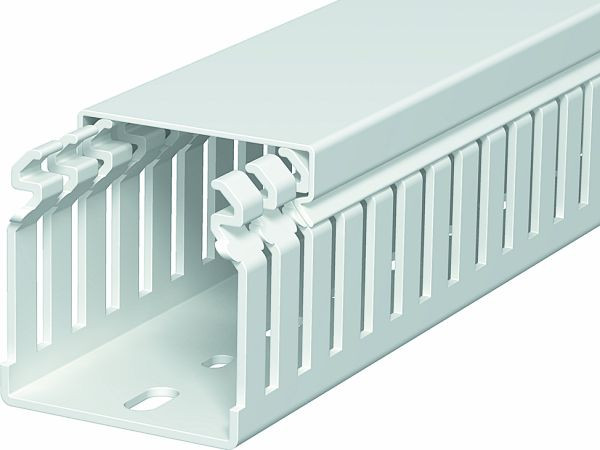 LKVH DIN Verdrahtungskanal nach DIN EN 50085-2-3 aus PC/ABS mit Bodenlochung zur Montage in Schaltschränken, Typ LKVH N mit Verjüngung in den Seitenschlitzen gegen Herausfallen der Leitungen, Nennmaß = Außenmaß, mit UL-Zulassung