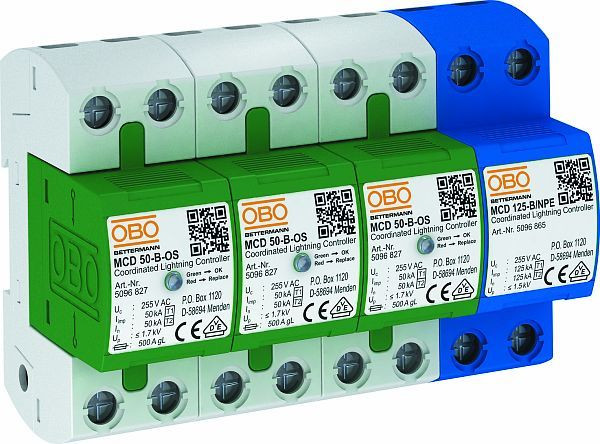 3 x MCD 50-B-OS: Koordinierter Blitzstromableiter Typ 1+2 EN 61643-11.