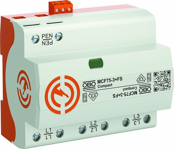 • Blitzstromableitvermögen 75 kA (10/350) 3-polig