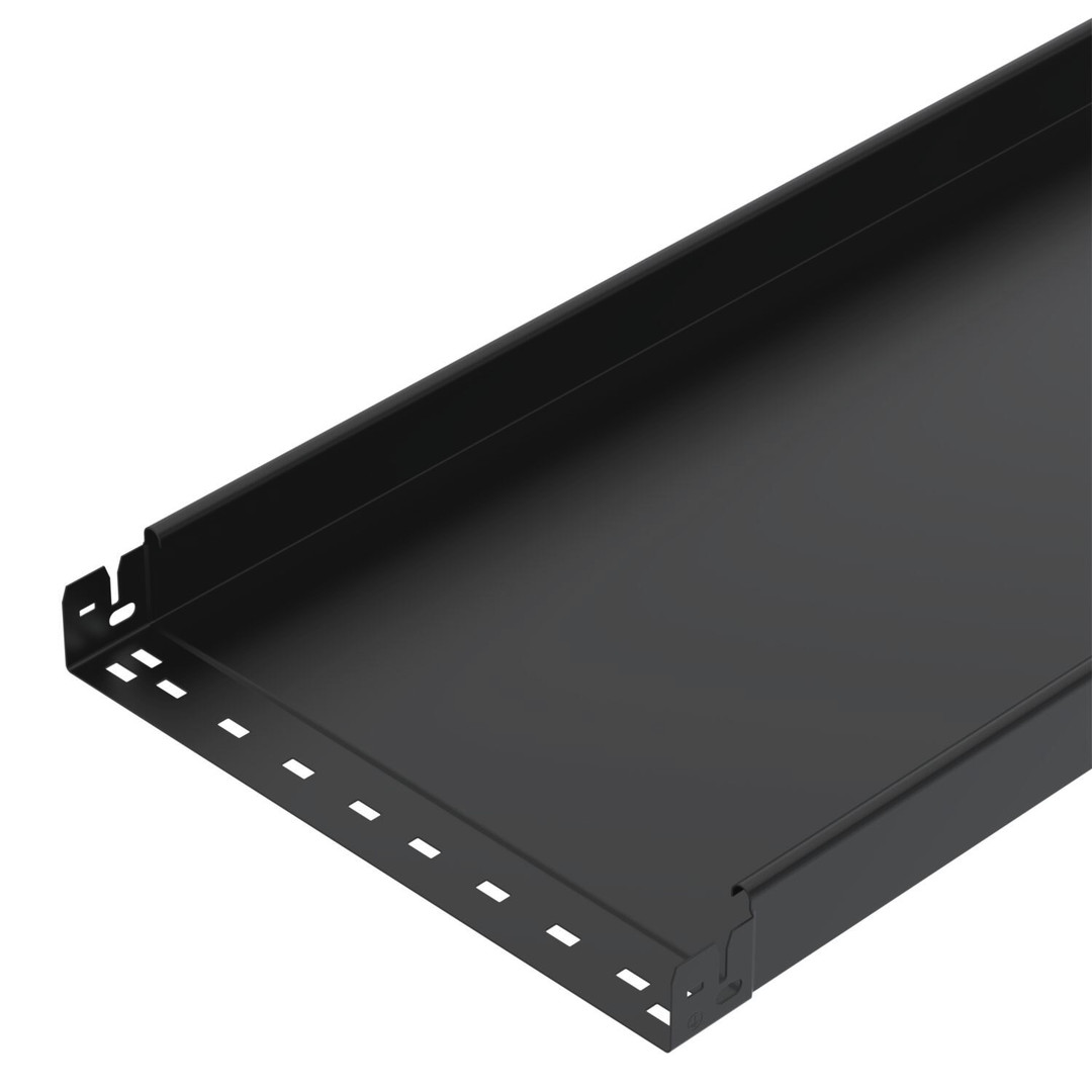 Ungelochte Kabelrinne mit integriertem Schnellbefestigungssystem. Schwarz beschichtet.