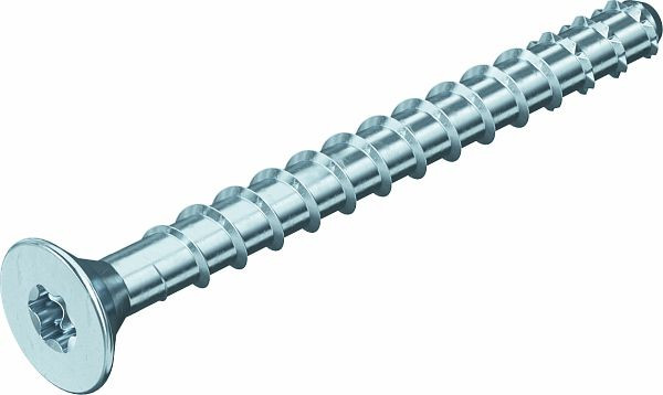 Schraubanker zur direkten Montage ohne Dübel in gerissenem und ungerissenem Beton sowie Mauerwerk. Mit Senkkopf für universelle Befestigungen. Innensechsrund-Antrieb T40. Gemäß EAD geprüftes, CE-gekennzeichnetes Bauprodukt mit Europäisch Technischer Bewertung (ETA) und Anwendbarkeitsnachweis. Tragfähigkeiten unter Brandbelastung bis zur Feuerwiderstandsklasse R120 nachgewiesen.