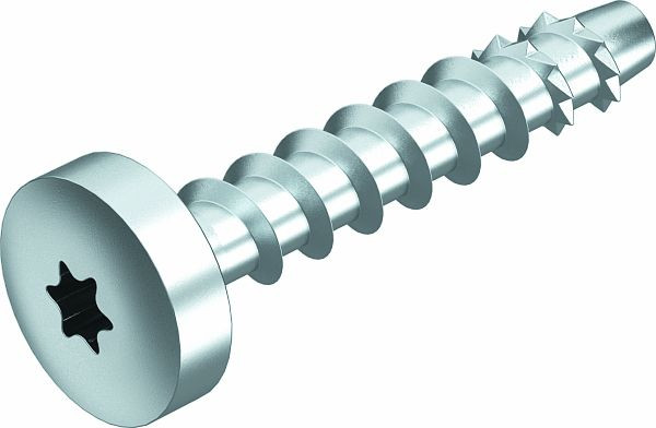 Schraubanker zur direkten Montage ohne Dübel in gerissenem und ungerissenem Beton sowie Mauerwerk. Mit Rundkopf für universelle Befestigungen. Innensechsrund-Antrieb T30. Gemäß EAD geprüftes, CE-gekennzeichnetes Bauprodukt mit Europäisch Technischer Bewertung (ETA) und Anwendbarkeitsnachweis. Tragfähigkeiten unter Brandbelastung bis zur Feuerwiderstandsklasse R120 nachgewiesen.