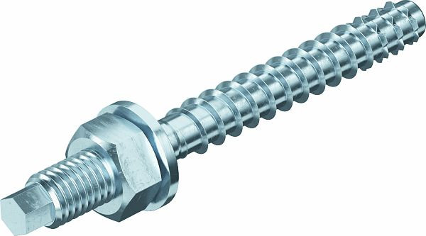 Schraubanker zur direkten Montage ohne Dübel in gerissenem und ungerissenem Beton sowie Mauerwerk. Mit Anschlussgewinde und Unterlegscheibe zur Aufnahme großer Lasten. Geeignet für die Befestigung von Hängestielen und Wandauslegern in Durchsteckmontage.