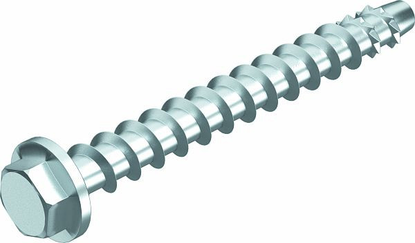 Schraubanker zur direkten Montage ohne Dübel in gerissenem und ungerissenem Beton sowie Mauerwerk. Mit Sechskantantrieb und angepresster Scheibe zur Aufnahme großer Lasten. Geeignet für die Befestigung von Hängestielen und Wandauslegern.
