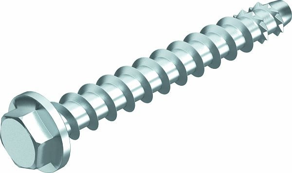 Schraubanker zur direkten Montage ohne Dübel in gerissenem und ungerissenem Beton sowie Mauerwerk. Mit Sechskantantrieb und angepresster Scheibe zur Aufnahme großer Lasten. Geeignet für die Befestigung von Hängestielen und Wandauslegern.