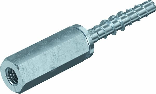 Schraubanker zur direkten Montage ohne Dübel in gerissenem und ungerissenem Beton sowie Mauerwerk. Mit Kombigewindemuffe M8/M10 für die Befestigung von Gewindestangen.