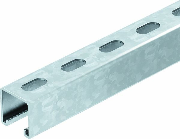 Schwere C-Profilschiene zur individuellen Installation von Tragekonstruktionen für z.B. Kabelrinnen oder als Konsole für Schaltschränke. Auch verwendbar zur Kabelverlegung, in Verbindung mit Bügelschellen mit U-Fuß.