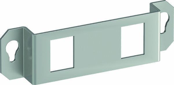 Montageträger zur Aufnahme von zwei Daten-Anschlussmodulen folgender Typen: Brand-Rex: geschirmt; EKU: E-Stone; Dätwyler: KS-T, MS-K und KU-T; R&M: Snap-In und Keystone; Rutenbeck: UM und UMflex; SETEC: MKJ, UKJ und XKJ; Siemon TERA; Telegärtner: AMJ und UMJ.