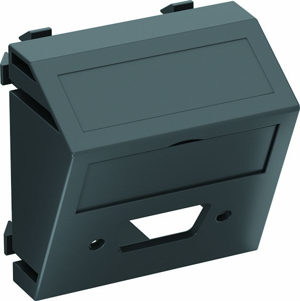 Multimediaträger für einen VGA / D-Sub9 Steckverbinder, Kabelauslass schräg, mit Beschriftungsfeld, ohne Steckverbinder. Trägerplatte mit Rastbefestigung, geeignet für den waagerechten und senkrechten Einbau in die Systemumgebung.