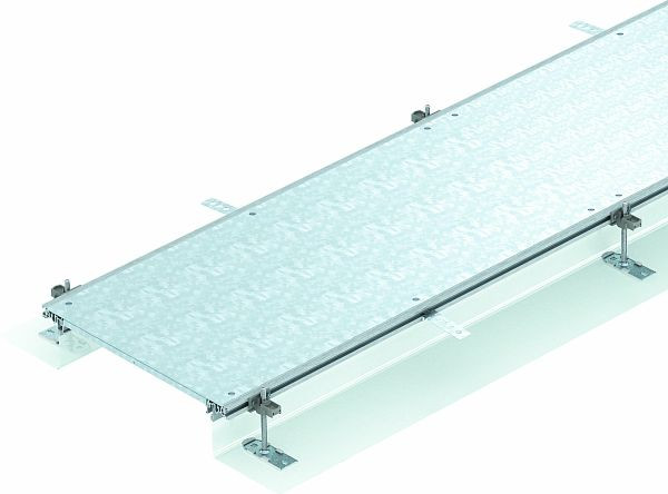 Montagefertige Kanaleinheit zur Leitungsführung, bestehend aus 3 Blinddeckeln, zwei Seitenprofilen mit angesetzter flexibler Seitenwand aus Metallgewebe, Bodenbelaganlegeprofilen mit H = 3 mm. Im Lieferumfang enthalten sind 6 höhennivellierbare Befestigungswinkel, 6 Estrichanker und 3 Deckelstoßdichtungen bei Kanalnennbreiten 200, 300 und 400 oder 6 Deckelstoßunterstützungen bei Kanalbreiten 500 und 600. Die unbedingt erforderlichen Nivelliereinheiten (Nivellierhöhe beachten) für die Deckelstoßunterstützungen 400, 500 und 600 sind nicht im Lieferumfang enthalten, bitte separat bestellen. Die Kanaldeckel sind bei der Lieferung verschraubt.