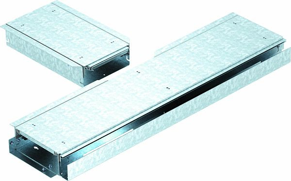 Montagefertige Verbindung einer Kanaleinheit mit Bürstenleiste und einer Kanaleinheit zur Leitungsführung, bestehend aus Kanalunterteilen, zwei Deckeln, höhenverstellbaren Seitenprofilen und wandseitig angeordneter Bürstenleiste zur Leitungsausführung. Im Lieferumfang enthalten sind zwei Deckelstoßdichtungen und zwei Verbinder.
