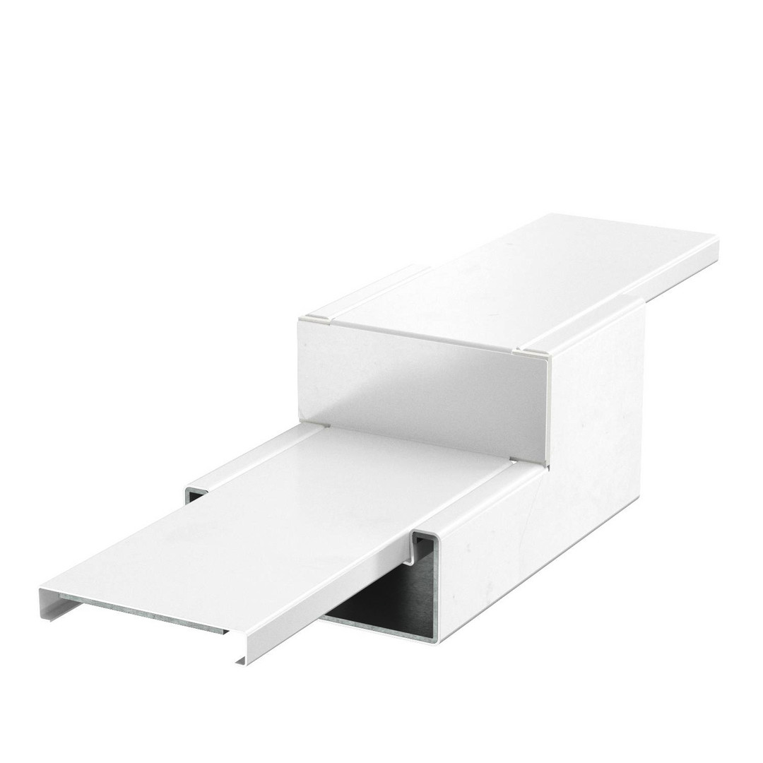 Reduzierstück mit intumeszierendem Brandschutzgewebe zur symmetrischen Reduzierung bei gerader Kanalstrecke von PLM D 0810 auf PLM D 0410. Geeignet für die direkte Wand- und Deckenmontage, Montage unterhalb von Systemböden und auf Tragsystemen. Werkzeuglose Stoßstellenmontage mit Stoßstellenverbinder PLM SI. Der Deckel wird werkzeuglos aufgerastet und ermöglicht eine schnelle Revision und Nachbelegung. Deckelüberstand ermöglicht versetzte Deckelmontage für durchgängigen Potentialausgleich der gesamten Kanalstrecke.