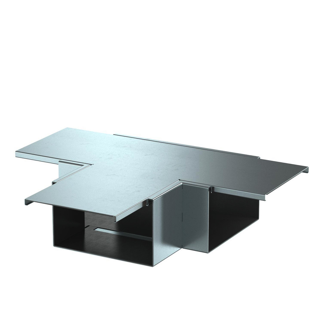 T-Abzweig mit intumeszierendem Brandschutzgewebe für Installationskanal PYROLINE® Rapid PLM. Geeignet für die direkte Wand- und Deckenmontage, Montage unterhalb von Systemböden und auf Tragsystemen. Werkzeuglose Stoßstellenmontage mit Stoßstellenverbinder PLM SI. Der Deckel wird werkzeuglos aufgerastet und ermöglicht eine schnelle Revision und Nachbelegung. Deckelüberstand ermöglicht versetzte Deckelmontage für durchgängigen Potentialausgleich der gesamten Kanalstrecke.