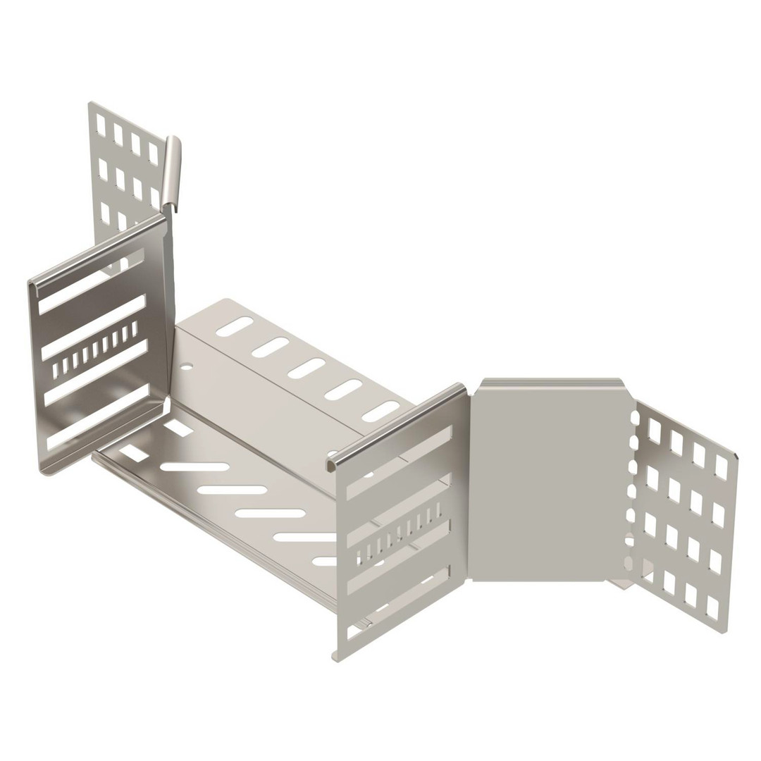 Anbau-Abzweigstück zum Erstellen einer horizontalen Abzweigung oder Kreuzung, Formteil für rast- und schraubbare Kabelrinnen Seitenhöhe 110 mm. Schraubenlose Montage mit Doppelklemmen oder Schraubverbindung mit Flachrundschrauben FRS und Kombimuttern M6. Einsetzbar im Innen- und Außenbereich. Befestigungsmaterial muss separat bestellt werden.