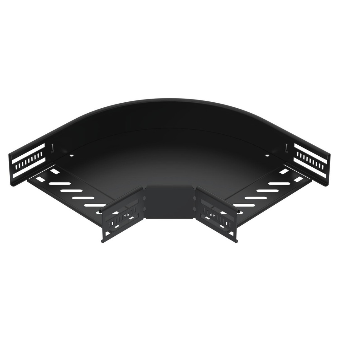 Bogen 90°, horizontal, Formteil für alle Kabelrinnentypen mit der Seitenhöhe 60 mm. Schwarz beschichtet.