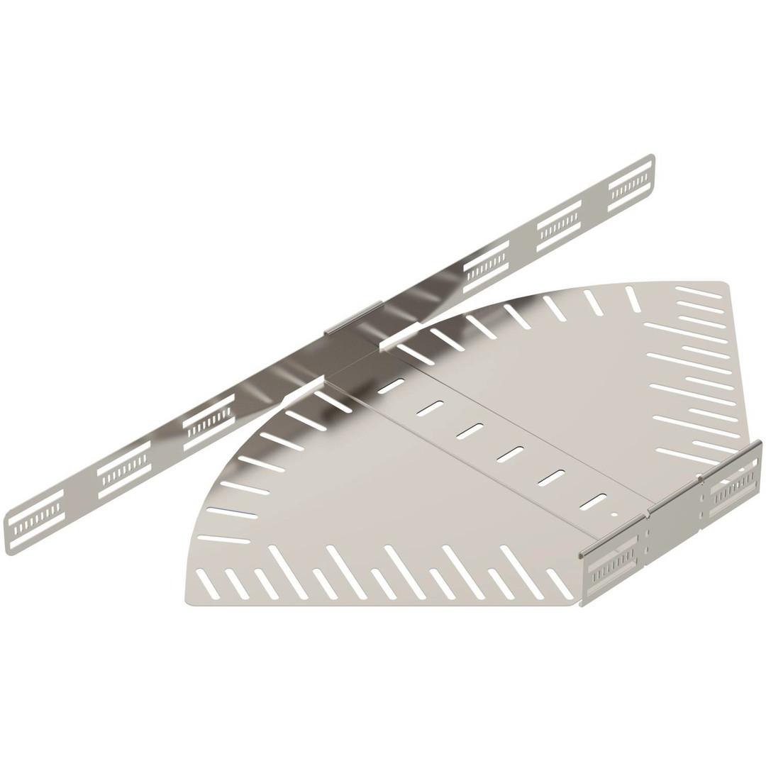 Winkelverstellbarer Bogen zum Erstellen einer horizontalen Abzweigung, Formteil für rast- und schraubbare Kabelrinnen Seitenhöhe 60 mm. Einstellbarer Winkel 0 - 90°. Schraubenlose Montage mit Doppelklemmen oder Schraubverbindung mit Flachrundschrauben FRS und Kombimuttern M6. Einsetzbar im Innen-und Außenbereich. Befestigungsmaterial muss separat bestellt werden.