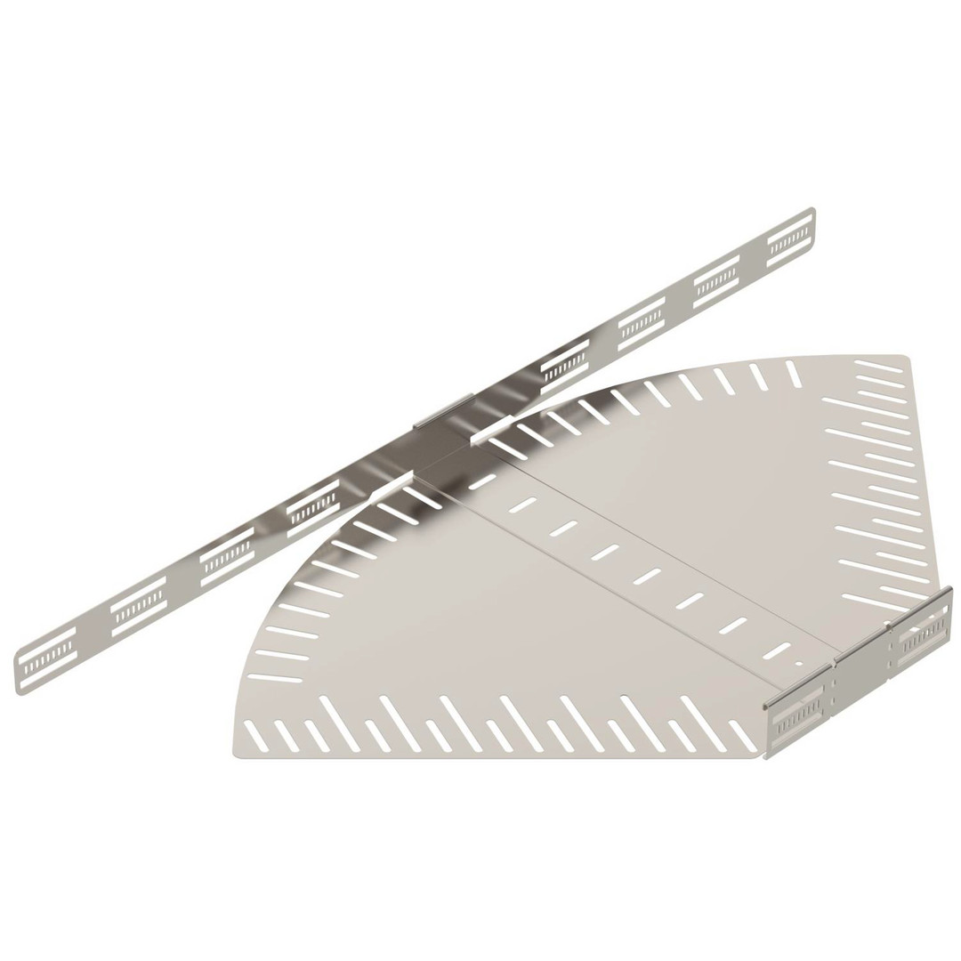 Winkelverstellbarer Bogen zum Erstellen einer horizontalen Abzweigung, Formteil für rast- und schraubbare Kabelrinnen Seitenhöhe 60 mm. Einstellbarer Winkel 0 - 90°. Schraubenlose Montage mit Doppelklemmen oder Schraubverbindung mit Flachrundschrauben FRS und Kombimuttern M6. Einsetzbar im Innen-und Außenbereich. Befestigungsmaterial muss separat bestellt werden.