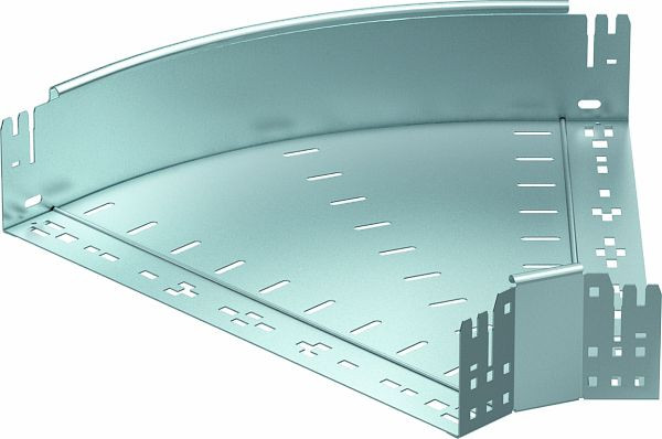 Bogen 45° mit Schnellverbindungs-System. Für alle Kabelrinnentypen mit der Seitenhöhe 110 mm.